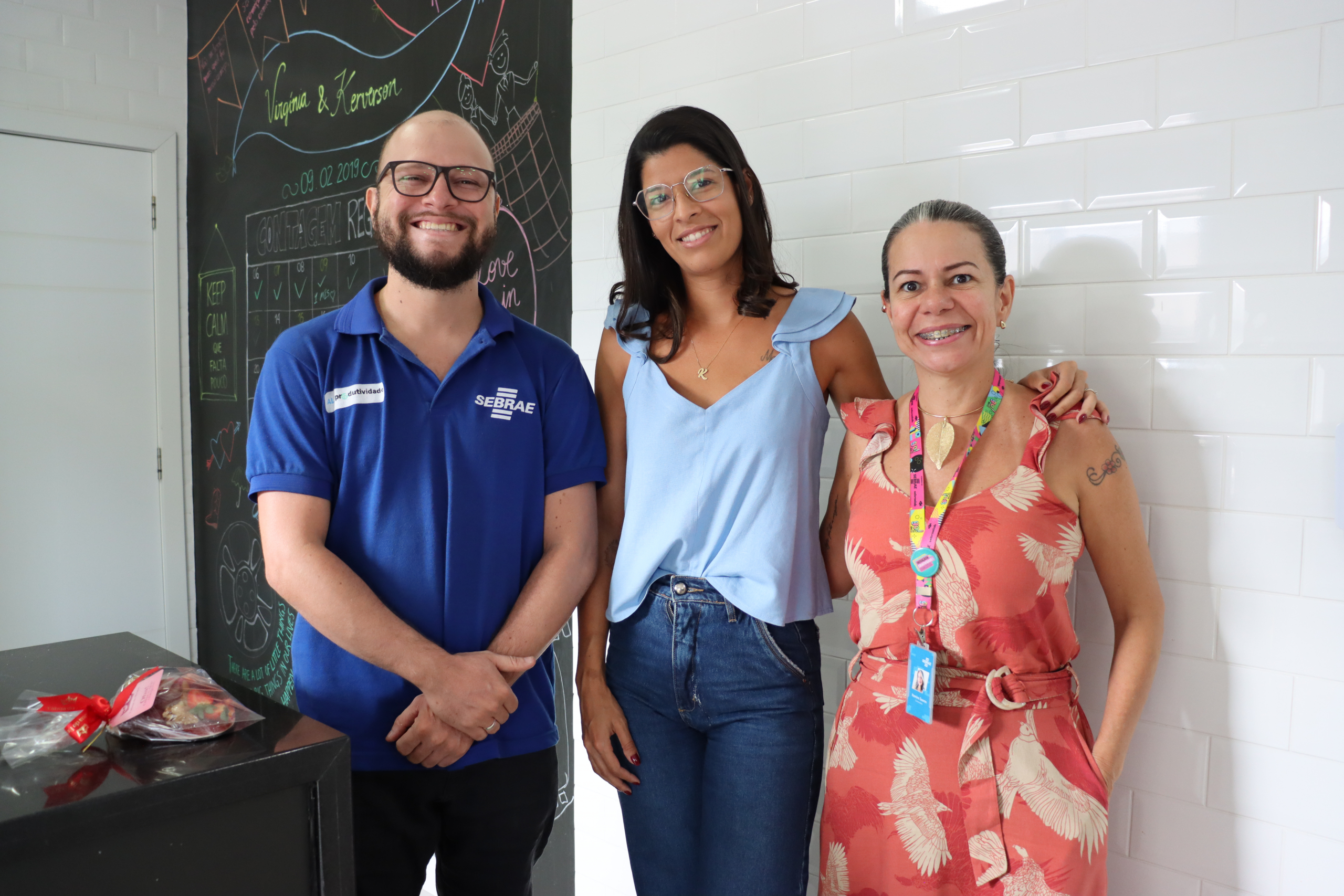 Bolsista ALI Produtividade responsável pelo atendimento da empresa – Sylvio Jayro, empresária Virgínia Holanda e a gestora do ALI Produtividade do Sebrae/RR Itamira Soares.
