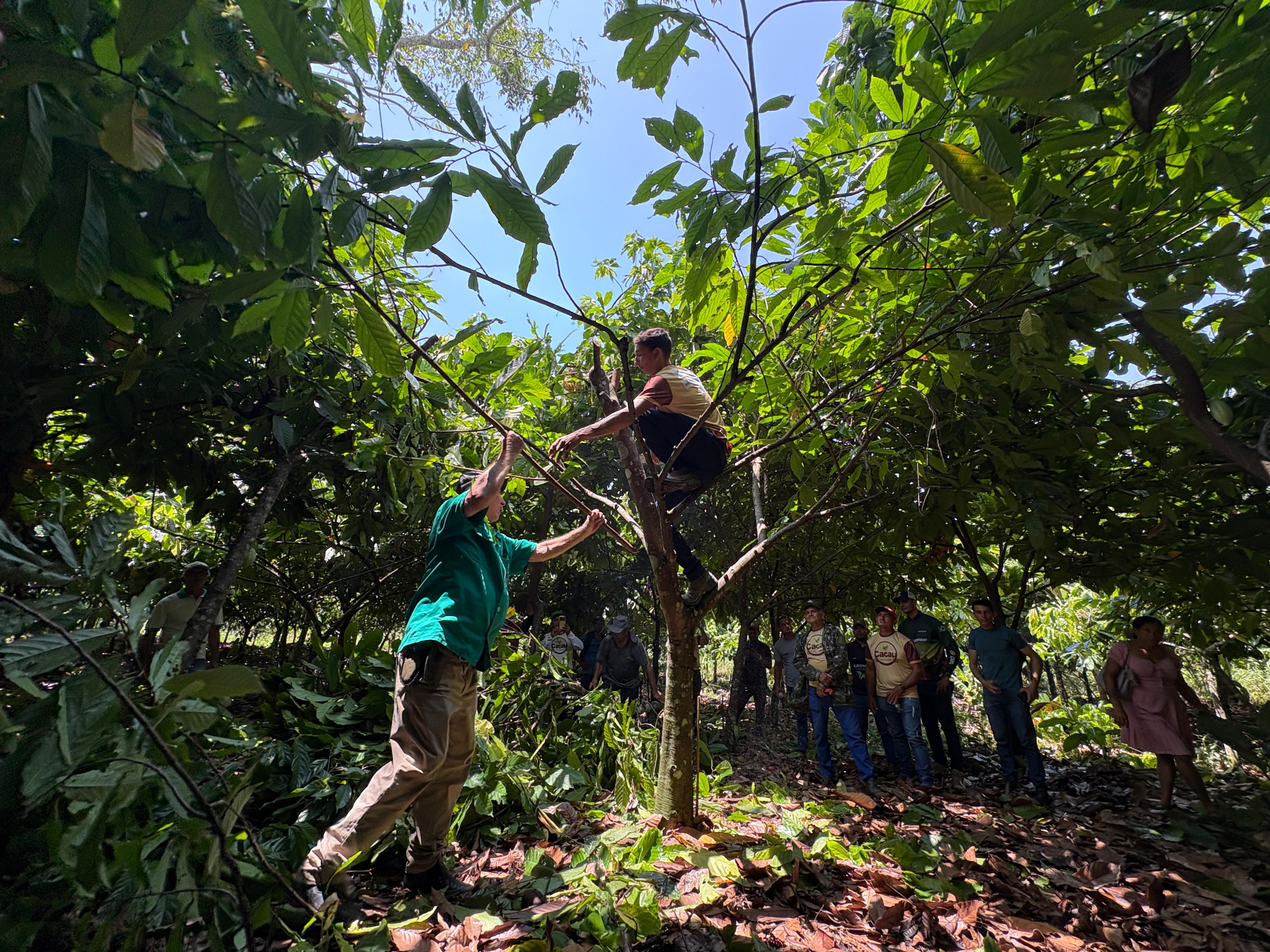 O segundo dia, com atividades práticas, consolidou o aprendizado. Os produtores tiveram a oportunidade de aplicar técnicas de poda, identificar as principais ameaças às lavouras e aprender a produzir defensivos orgânicos. A experiência em campo serviu para reforçar que o sucesso na cacauicultura está diretamente ligado à adoção de boas práticas e à busca contínua por conhecimento.