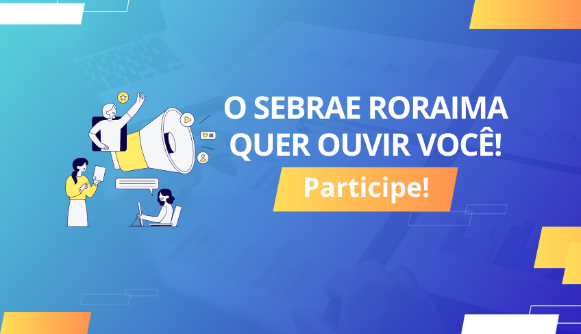 O Sebrae Roraima convida todos os empresários e empreendedores de Roraima a participarem da Pesquisa de Escuta, uma iniciativa voltada para entender suas opiniões, desafios e sugestões, a fim de fortalecer o cenário empreendedor do estado.