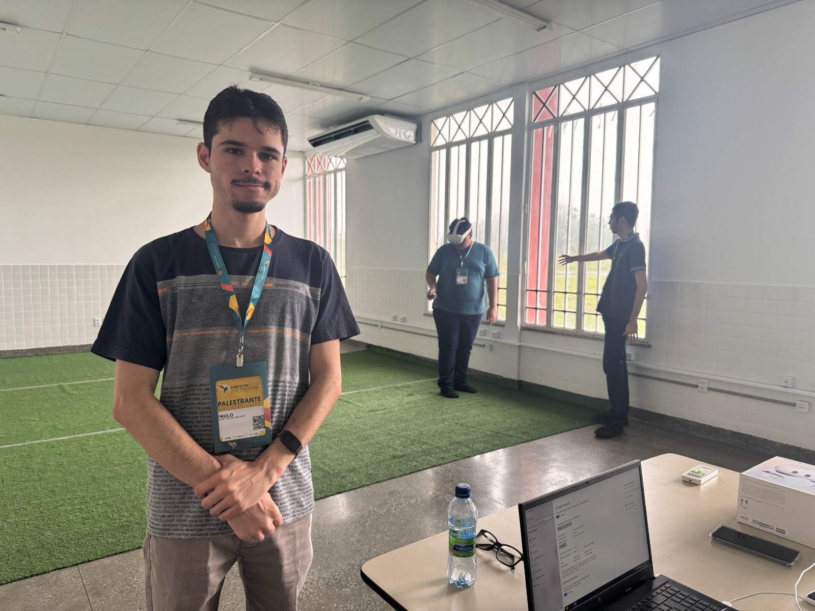Proporcionar a vivência da floresta amazônica para dentro da realidade virtual foi a proposta da oficina “Sentindo a natureza por meio da Realidade Virtual Imersiva”, idealizada pelo aluno formando do curso de Ciência da Computação da Universidade Federal de Roraima (UFRR), Ramsés Carvalho, no primeiro dia de Amazontech 2025.
